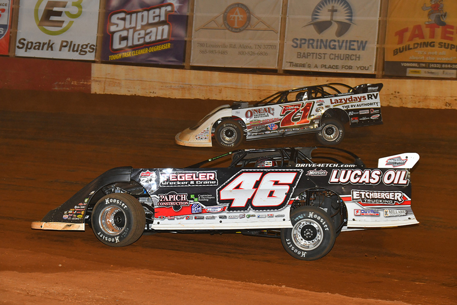 Hudson O'Neal races hard during the 'Mountain Moonshine Classic' at Smoky Mountain (TN) Speedway - MRM Racing Photo